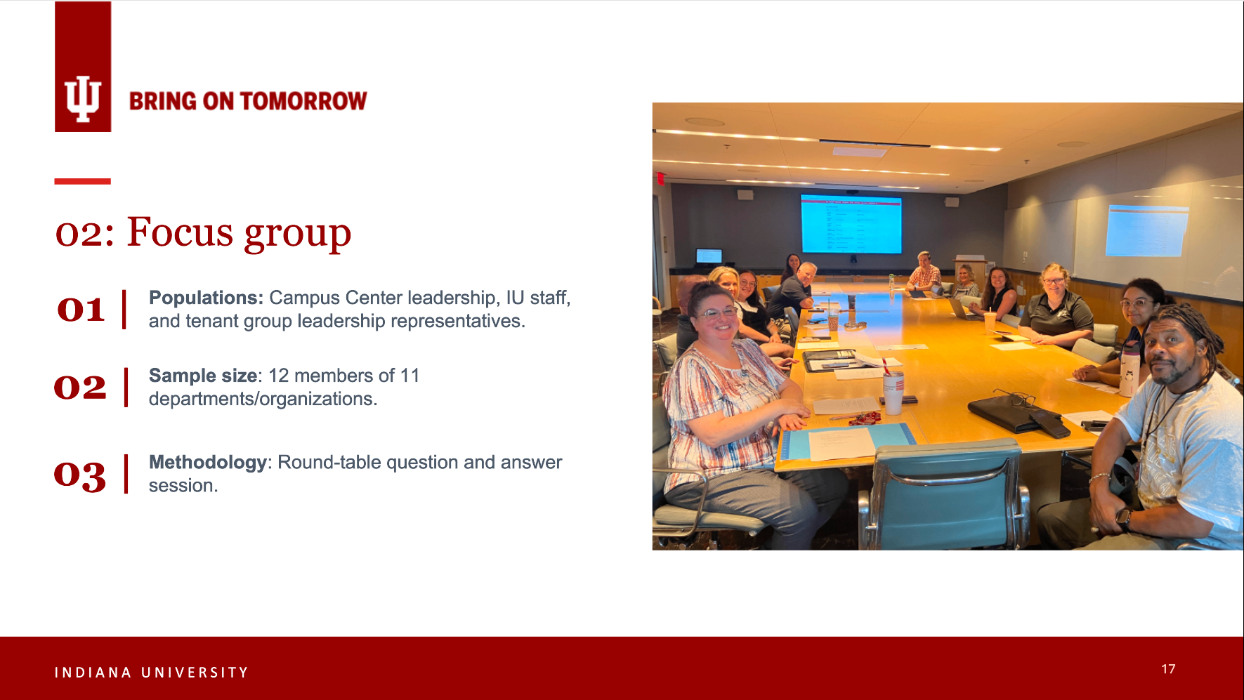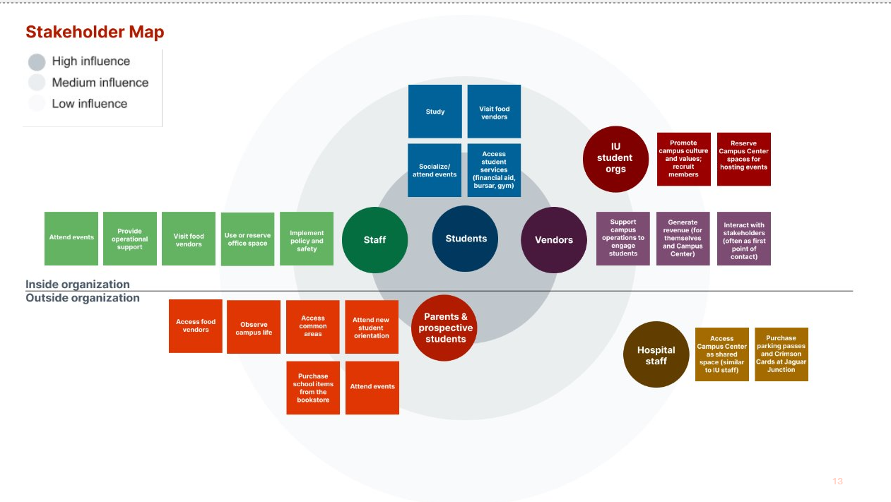 We held a focus group with Campus Center staff and tenants to better understand their goals for both the Campus Center and their individual businesses. During this session, we also identified areas where visitors frequently experience confusion, allowing us to pinpoint specific wayfinding challenges and opportunities for improvement.