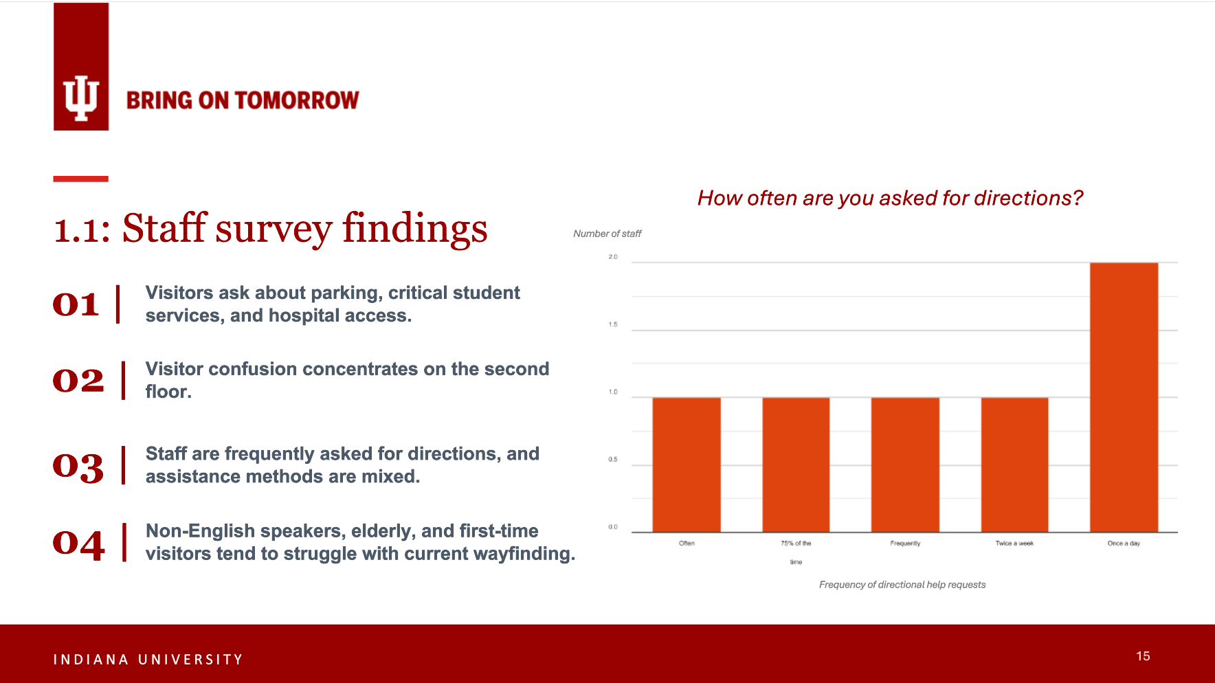 We conducted surveys with staff, students, and visitors to better understand where they experienced difficulties with wayfinding.